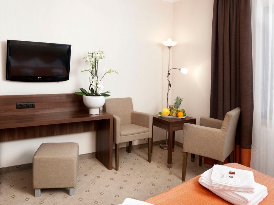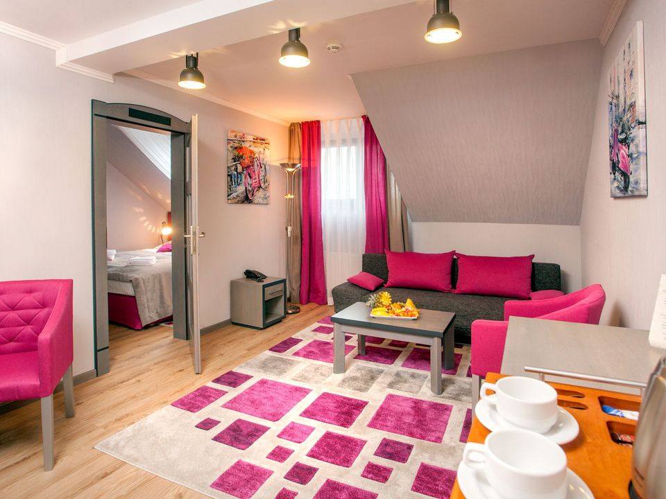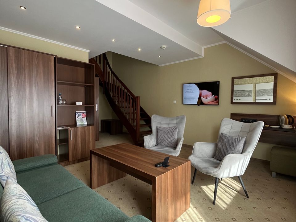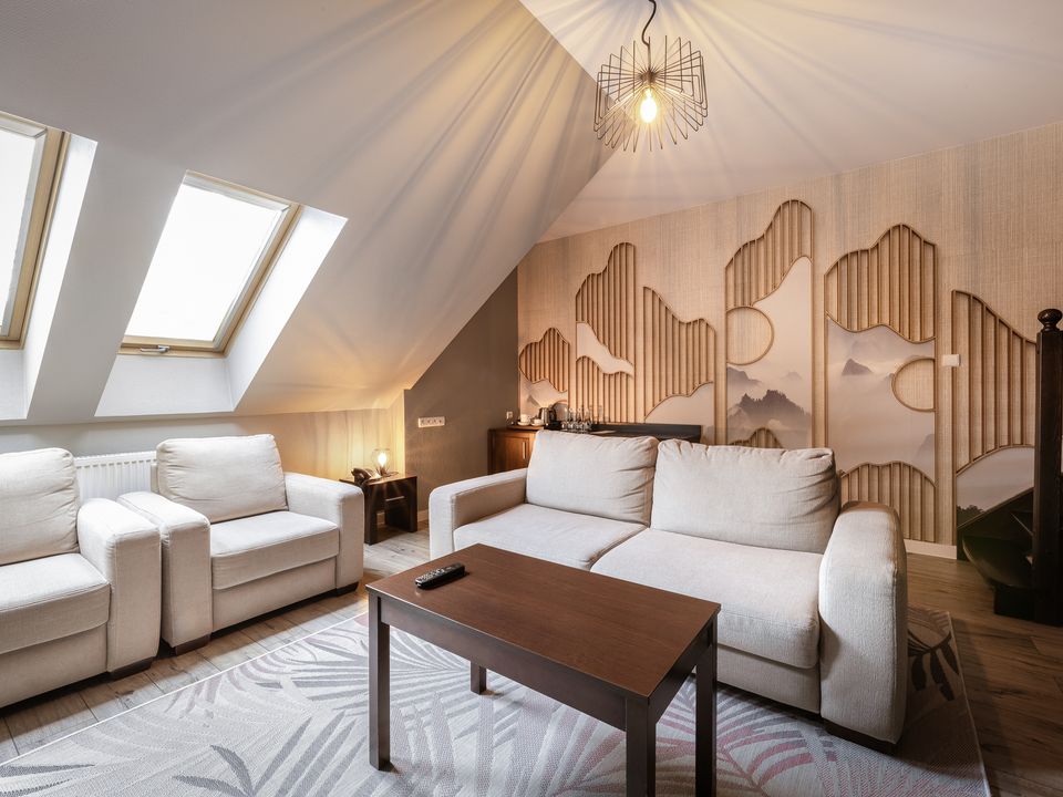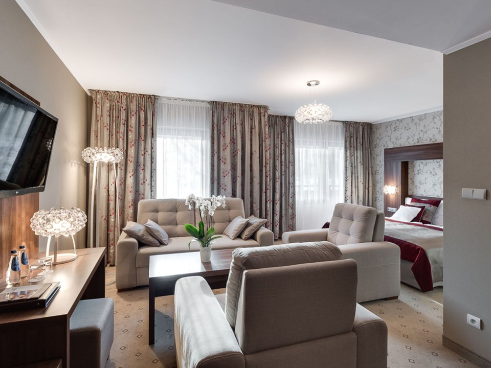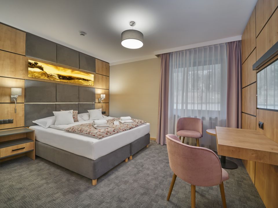 Vyjímečný pokoj v Hotel Artus. Jeho předností je velká velikost - 32m2. Široké lůžko 180 cm, odpočinkový kout, velský televizor 55´´ a koupelna s vířivkoou pro dva. Všechny tyto prvky zajistí, že odpočinek na tomto pokoji bude opravdovým potěšením.
