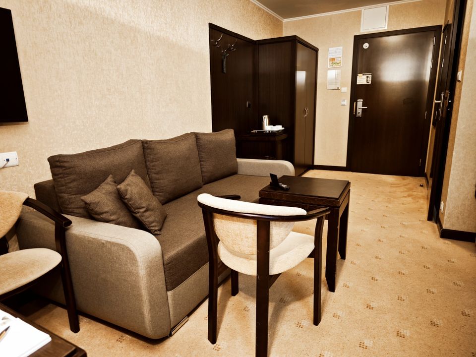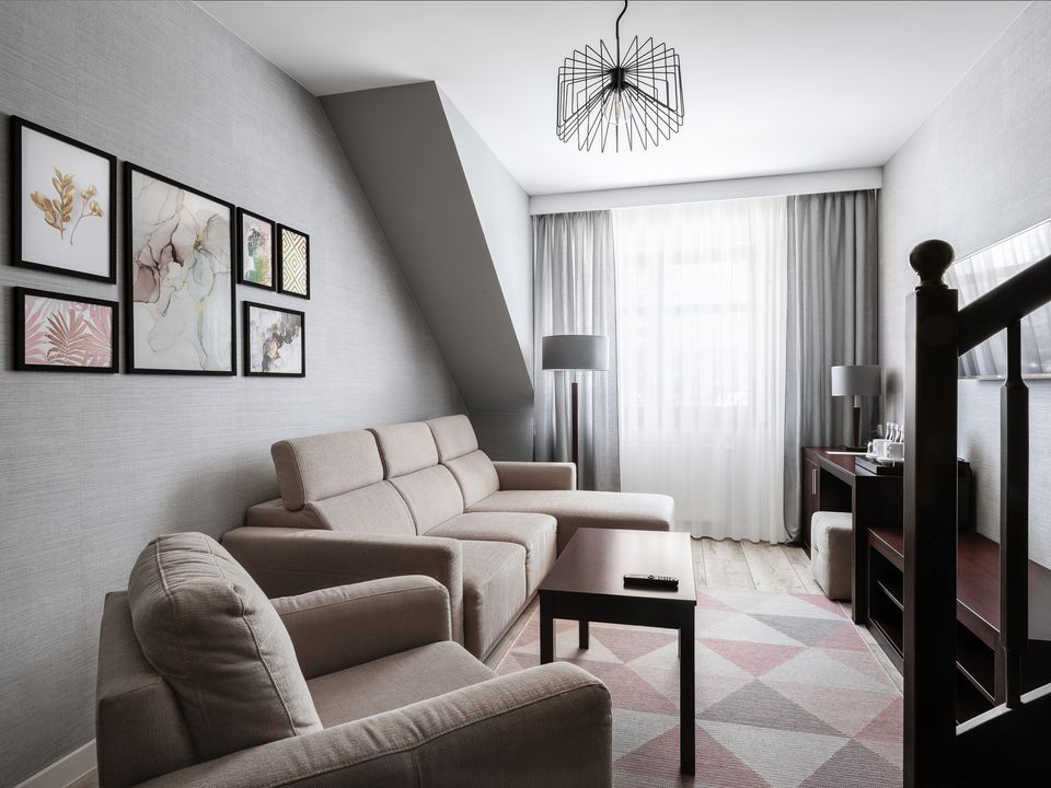 Studio se nachází v historické části hotelu Artus a skládá se z ložnice, obývací části a koupelny a jeho velikost není větší než 22m2.