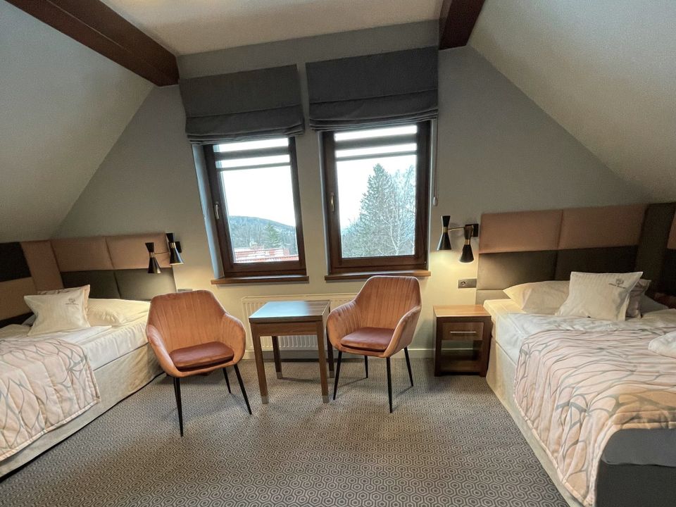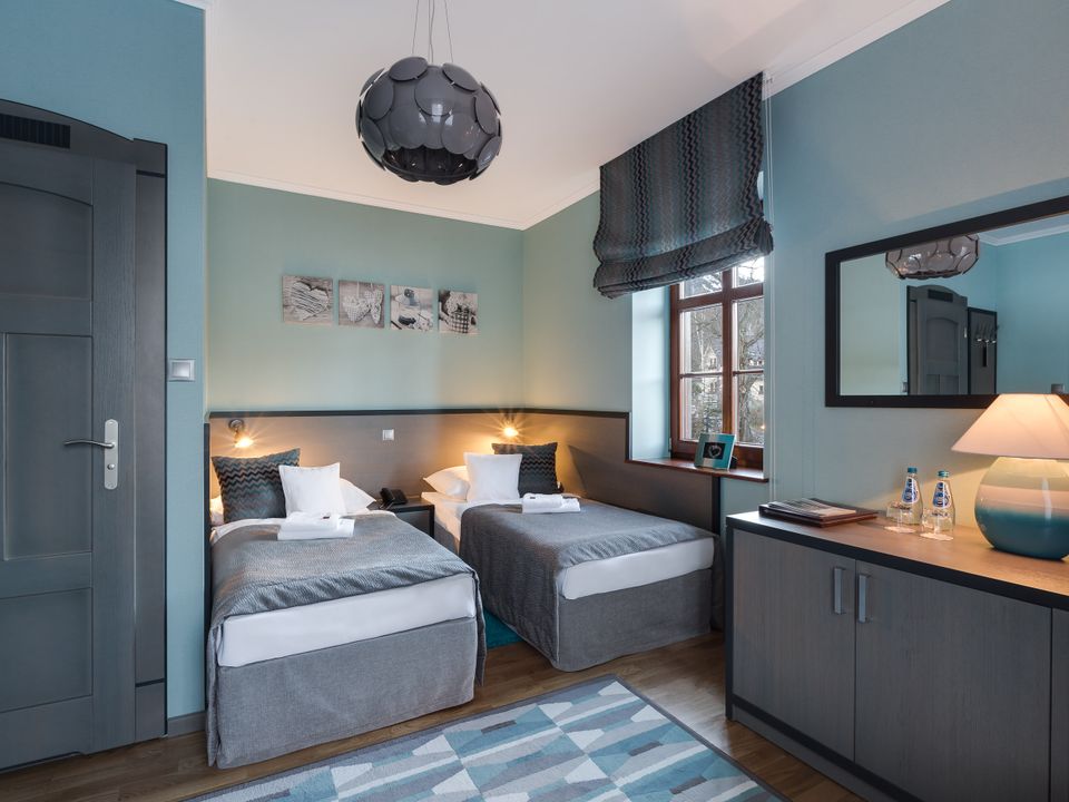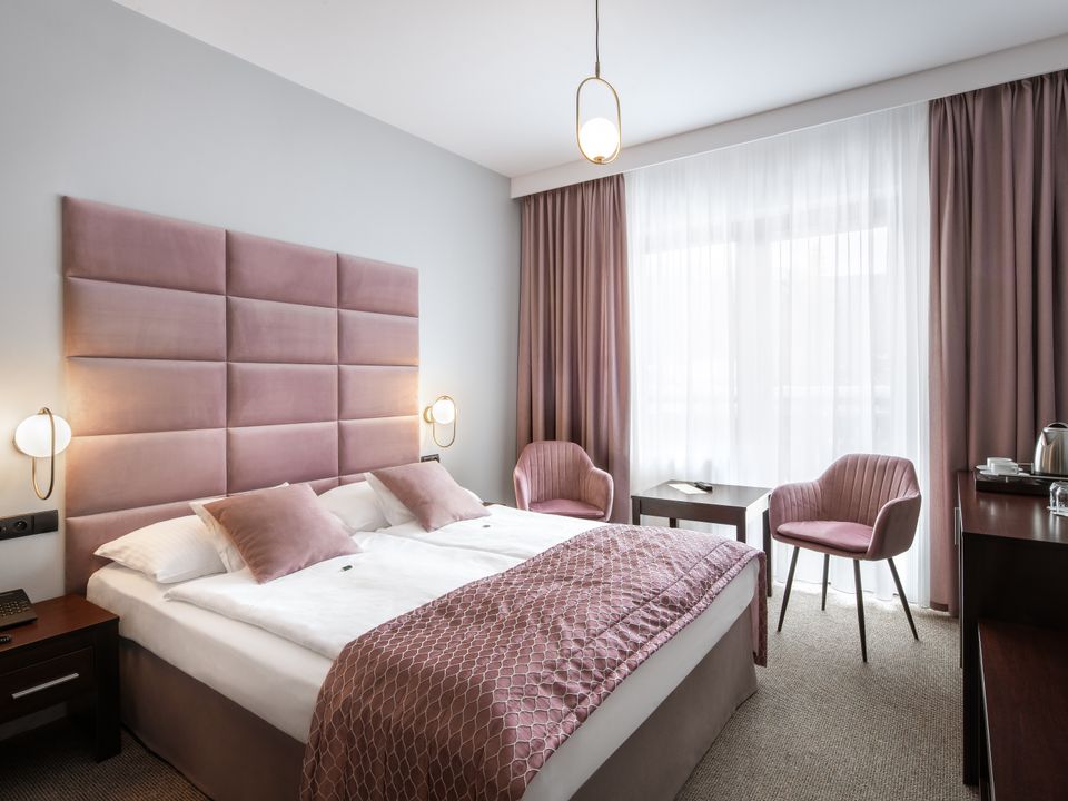 Pokoje znajdują się w części Artus. Posiadają ok. 18 m2 powierzchni i balkon oraz ładną łazienkę. W każdym z pokoi znajduje się łóżko małżeńskie o wymiarach 160 x 200 cm.
